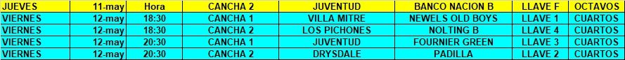 Cuatro de los cinco equipos que estaban en octavos pasaron a cuartos de final. Hoy se medirán Padilla y Drysdale, por lo que ya habrá un clasificado a Semis de los equipos de la Metro.